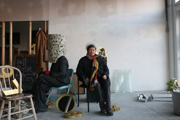 A performance piece done in Yvette Rock's studio. The painting in the performance symbolizes a ship carrying enslaved Africans.