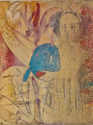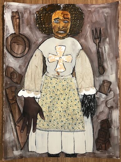Mixed media on canvas, curtains, curtain rod, 52"x64", 2022
